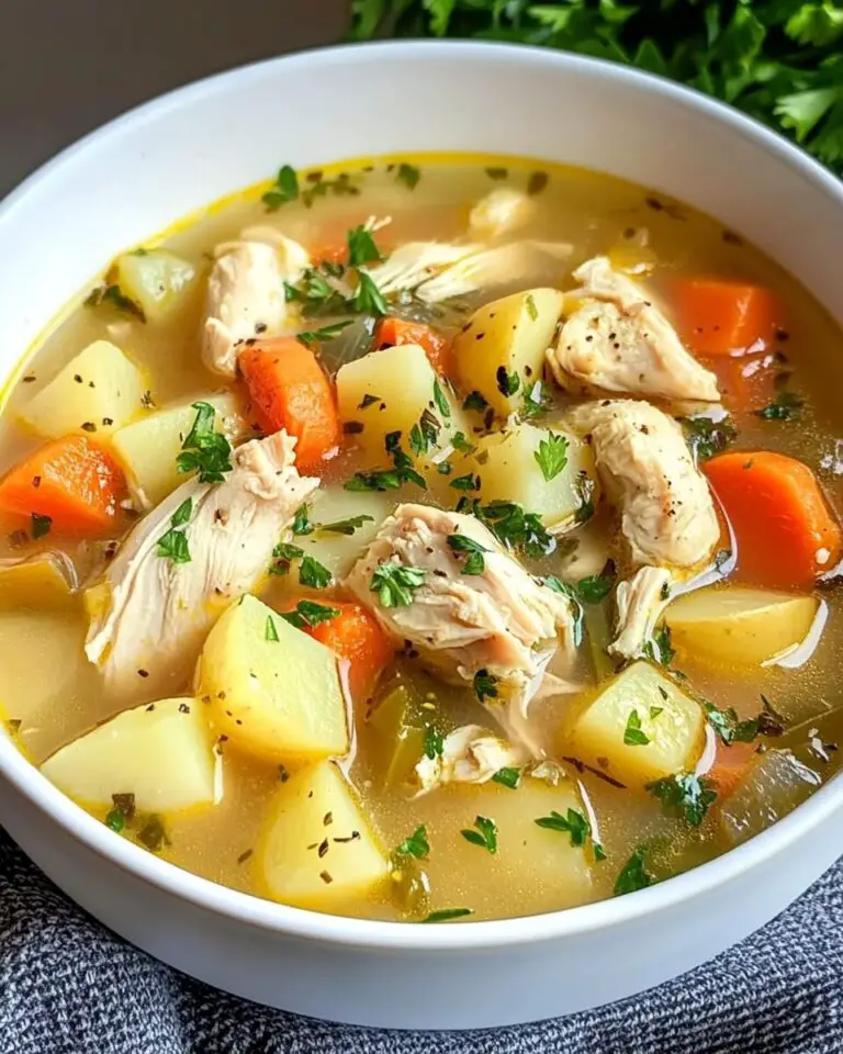This Comforting Chicken Soup with Potatoes is the ultimate homemade comfort food, packed with tender chicken, hearty potatoes, and a rich, creamy broth. Perfect for cold days, sick days, or whenever you need a cozy bowl of warmth, this soup is easy to make in one pot and great for meal prep. With simple ingredients and a satisfying, creamy texture, it’s sure to become a family favorite!